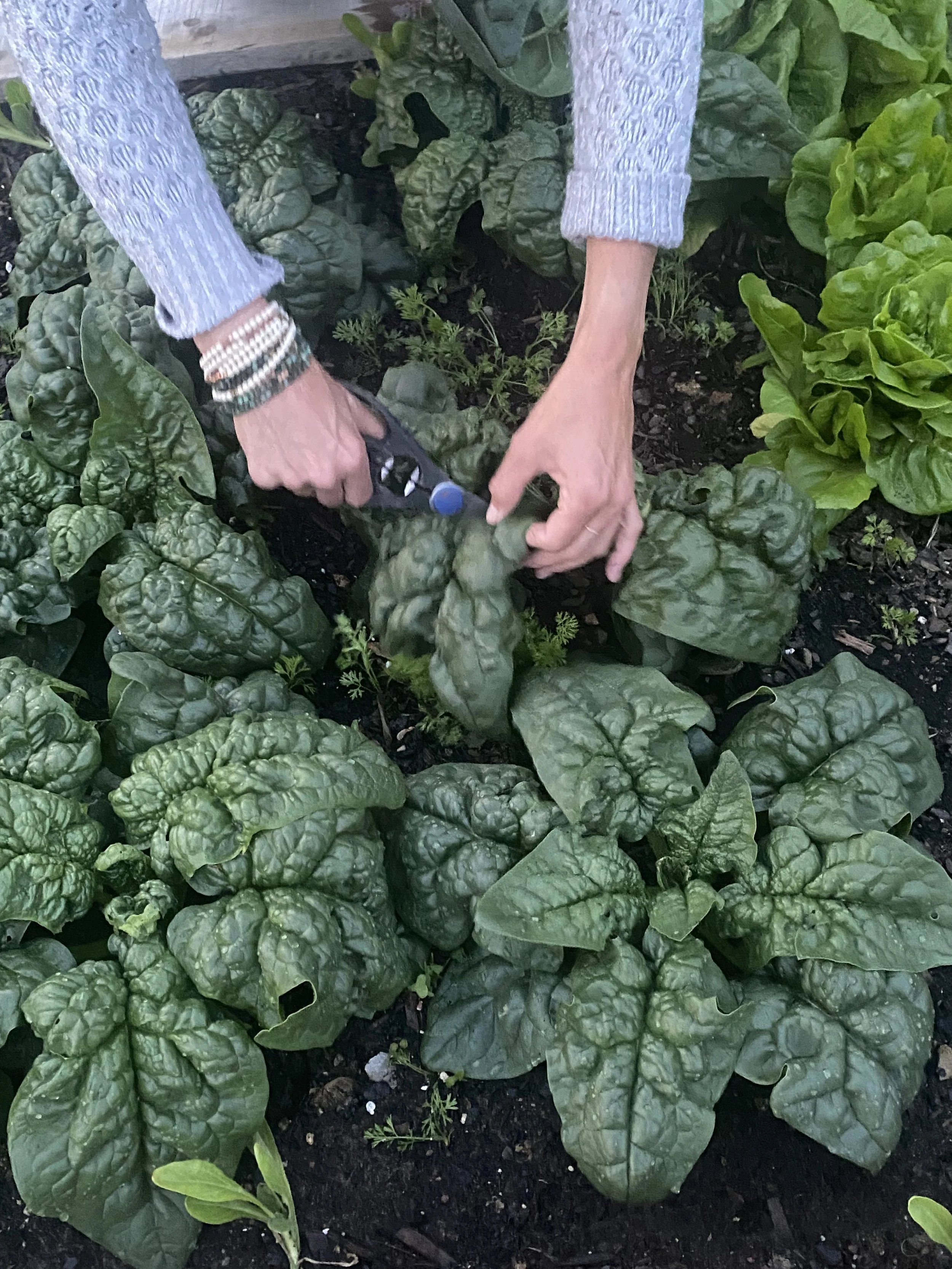 Even one of these ingredients can anchor a cozy winter meal. After the hustle of fall installs and garden cleanups, I love stepping outside and harvesting whatever is still thriving. Then it’s straight back into the kitchen with my wool socks, my jazzy Spotify mix, and the smell of herbs, roasting veg, and simmering broth filling the whole house.